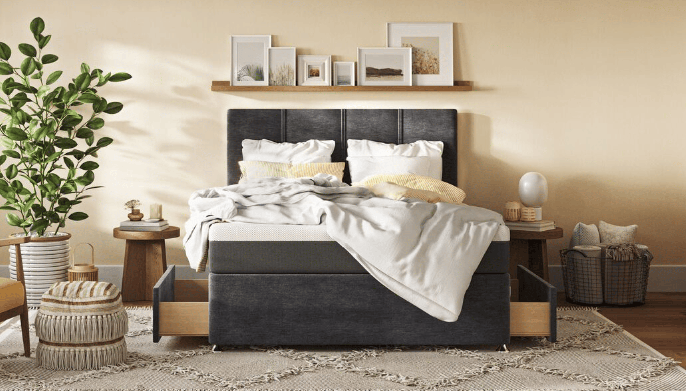 - Classic divan bed frame with 2 integrated drawers.